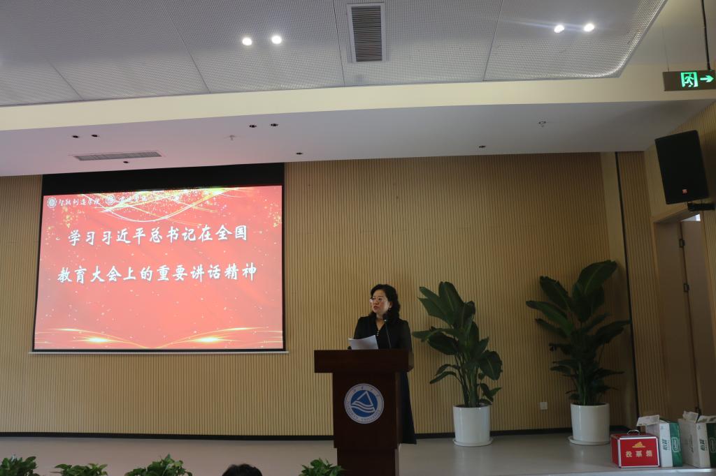 王冰带领全体教职工学习习近平总书记在全国教育大会上的重要讲话精神。她认为在庆祝我们国家第40个教师节的时刻,召开全国教育大会意义重大、影响深远。全体教职工要认真学习领会、深入贯彻落实,把思想和行动统一到总书记重要讲话精神和党中央决策部署上来,以公司第五次党代会为契机,坚持以全局观念和系统思维统筹支持和融入公司教育科技人才体制机制一体改革,以新发展理念深化公司教育综合改革,提升公司综合治理能力,大力弘扬教育家精神,加强公司高素质专业化教师队伍建设,在新校区的热土上塑造新公司发展的新动能新优势。