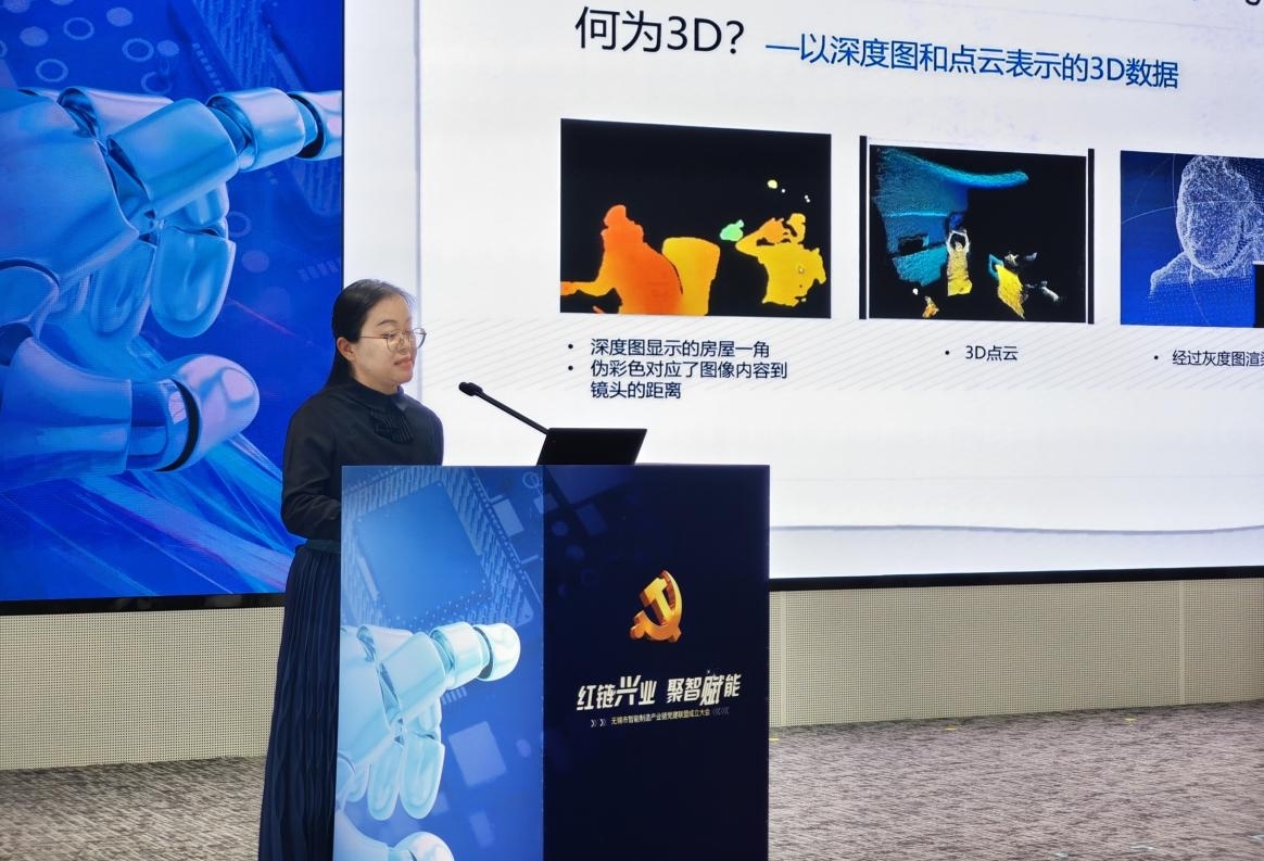 围绕智能制造领域的应用与实践,公司PlayAce游戏平台智能制造工程系主任吴静静从机器人3D视觉感知的角度进行了专题报告,介绍了公司与威孚集团的合作成果——双臂轮腿式人形机器人赋能车间物流的案例。吴静静作为“双带头人”党支部书记,近年来带领系部教师在与以威孚集团为代表的多家企业的产研合作过程中,坚持以党建赋能科研、赋能产业,取得了卓有成效的成果,支部于今年顺利通过江苏省样板党支部的验收。
