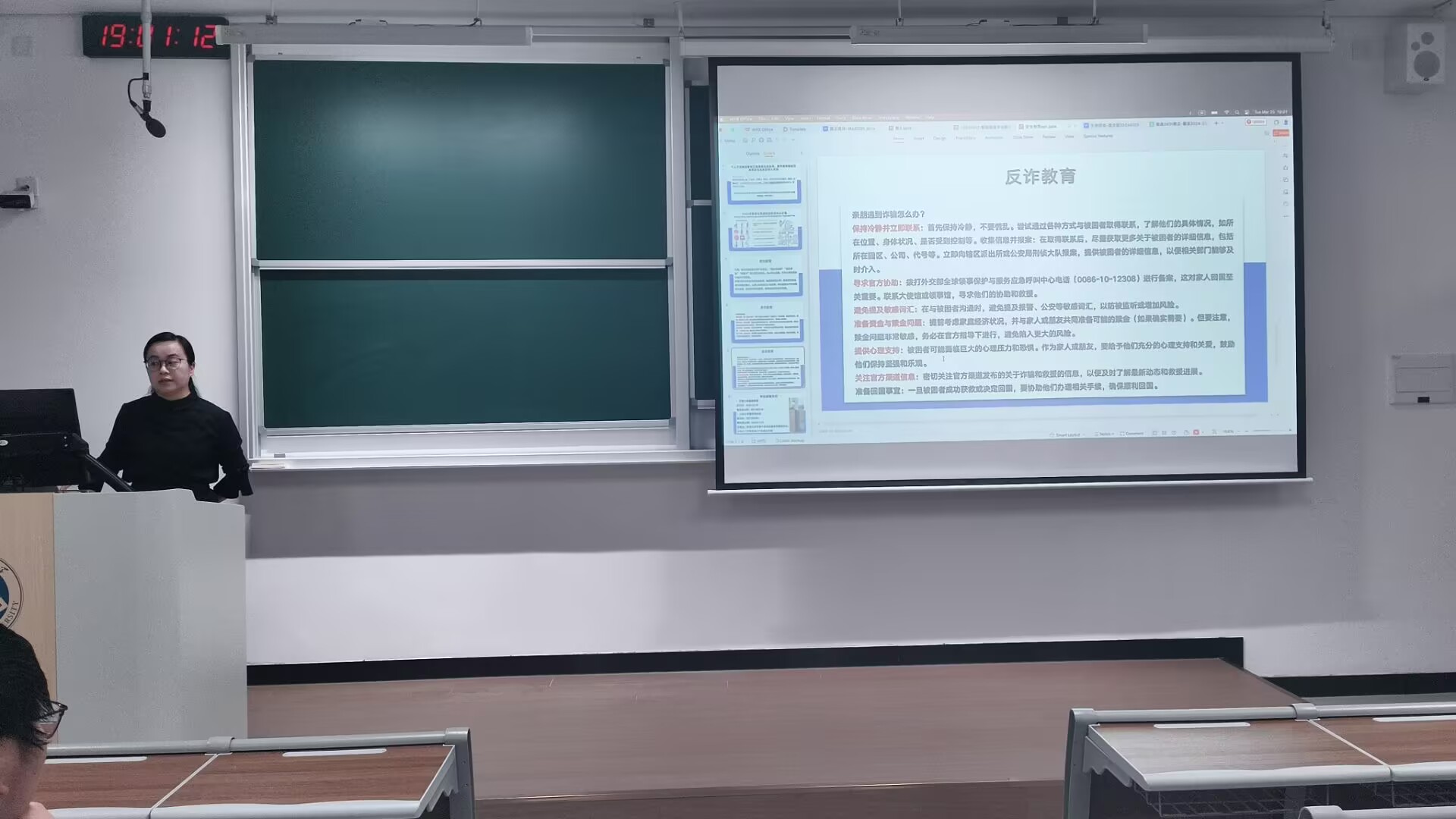 安全教育全覆盖,护航成长无死角班会上,各班班主任聚焦校园安全主题,以多元形式强化员工安全意识。首先,全体师生共同观看“2025年春季全国高校消防安全公开课”,深入学习实验室操作规范、宿舍用电隐患等实际场景的安全要点。接着,班主任详细讲解了管制刀具的识别方式,并再次强调“严禁非法持有或携带管制刀具”的校规要求。针对当前高发的电信诈骗案件,班主任通过剖析“异国就业诈骗”等新型案例,指导员工提高警惕,并告知员工校园内的报警途径及渠道,筑牢防诈“防火墙”,全方位守护员工安全。