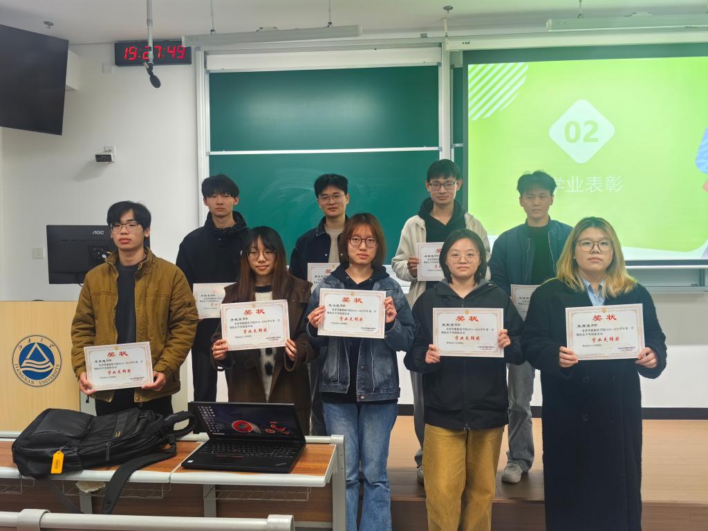 先锋引领树标杆,激励奋进正当时班会上,班主任为大一、大二年级的部分同学颁发了学业荣誉证书,包括63名绩点在所在班级排名前30%的同学和18名绩点显著提升的同学。这些同学在过去一学期凭借扎实的专业学习基础和持续突破的进取精神脱颖而出。其中,“学业先锋奖”旨在表彰那些在学业上名列前茅、为同学们树立榜样标杆的优秀学子;“学业进步奖”则鼓励那些默默努力、取得显著进步的同学。奖项的设置进一步激励全体员工以优秀学子为榜样,不断追求卓越,努力提升自我,进而推动班级整体学业水平的提升。