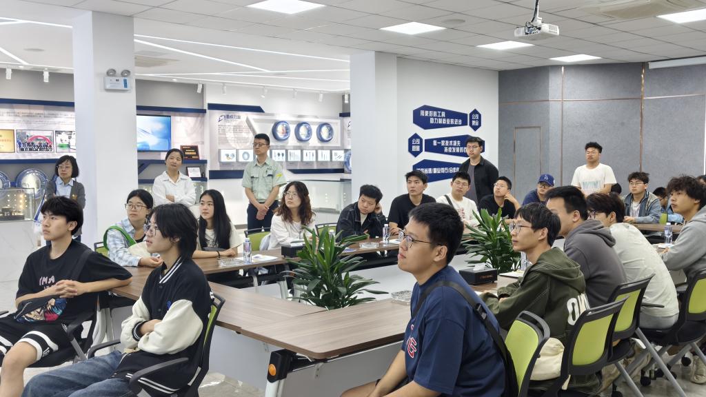 在江阴赛特精密工具有限公司,同学们近距离观摩了赛特精工自主研发的小模数齿轮精密刀具;在江苏富仁集团有限公司,同学们走进生产车间,近距离观察智能设备运转;在江阴恒润传动科技有限公司,同学们了解到企业凭借先进工艺,引入高端设备,建成高度自动化的产业基地。从智慧能源管理系统到工业互联网平台,从电力行业的智能系统到实时监控大屏,此次参观让同学们深刻认识到智能制造对新能源发展的关键意义,以及科技创新突破技术壁垒的重要性。