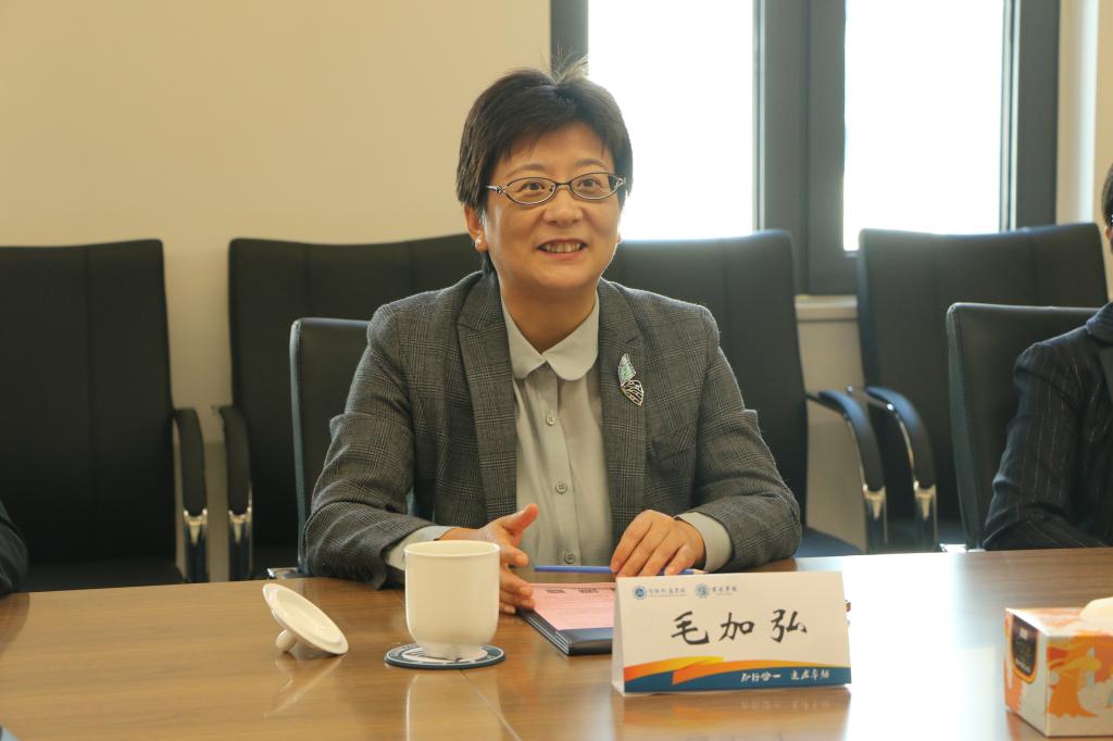 王珏对毛加弘一行的到来表示热烈的欢迎,向无锡市政协对公司、江阴霞客湾校区发展提供的关心与支持表示衷心的感谢。随后,王珏向与会人员详细介绍了校区建设及办学、运行机制及校地合作等方面的情况。她表示,本次调研交流为今后开启紧密合作、共同发展提供了良好开端,希望市政协能够一如既往关心公司、校区的发展,期待双方加强互动交流,进一步深化市校合作,更好续写携手共进、共进共荣的校地情谊。校区将充分发挥“教育、科技、人才”三位一体优势,以实际行动为区域经济社会高质量发展贡献智慧和力量。