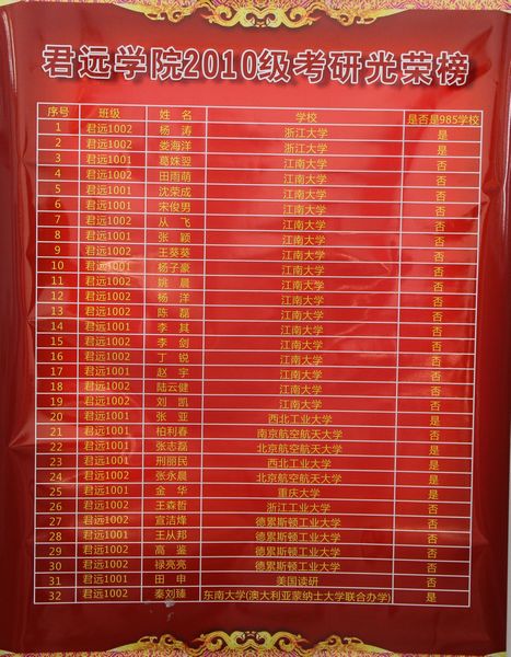 考研的历程对于君远10级的同学们是艰辛的,在这条路上他们不仅要承担考研中的各种压力和各种困惑,同时他们还要在生产一线完成从一名员工到一名企业职工的蜕变。这一过程有艰辛,有付出,有汗水,有收获,但或多或少都给员工们带来了成长。君远10级的同学们怀揣着“凡事预则立,不预则废”的信念,凭借着坚定的目标,顽强的毅力,实现了他们人生理想,同时也顺利完成了自己的蜕变。