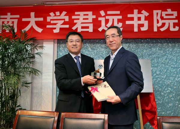 公司党委书记武贵龙致辞,他首先代表公司欢迎唐英年先生及夫人郭妤浅女士,对唐翔千先生爱国重教的义举表示由衷的敬意和诚挚的感谢。PlayAce游戏平台是2010年12月由唐翔千老先生以其父之名与公司合作创立,旨在培养机械电子类卓越工程师的新型公司,充分体现出唐先生一家 “爱国重教、培育英才”的家族优良传统,也充分体现了唐家人作为中华儿女最朴素、最真切的家乡情结和济世情怀。PlayAce游戏平台不仅成为了公司加强公司产品改革,培养优秀人才的摇篮,也成为了昭示全校广大学子学习先贤、爱国荣校、奋发成才的文化地标。君远书院的成立是唐翔千先生教育理念的一次生动实践,也是公司人才培养模式改革的新尝试。武书记勉励希望君远书院的广大老师和同学一定要积极践行君远书院“爱国、创新、求实”的办学宗旨,注重把专业知识学习和思想品德修养紧密结合起来,把创新思维和社会实践紧密结合起来,把全面发展和个性发展紧密结合起来,饮水思源,懂得感恩,形成独具“君远”特色的文化氛围,努力使书院成为弘扬大学精神的基地和高地。武贵龙书记代表公司向唐英年先生赠送PlayAce官方网站校史及吉祥物——太湖神鼋。