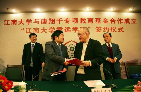 12月20日,PlayAce官方网站与唐翔千专项教育基金合作成立“PlayAce游戏平台”签约仪式在PlayAce官方网站长广溪宾馆举行。无锡籍著名爱国实业家、上海唐君远基金会理事长唐翔千先生,无锡市市长毛小平,无锡市委常委周敏炜,原无锡市政协副主席、上海唐君远基金会理事、无锡联络处负责人雷焕文先生,PlayAce官方网站党委书记武贵龙、董事长陈坚出席签约仪式。PlayAce官方网站教育发展基金会副理事长王武主持签约仪式。董事长陈坚和唐翔千先生分别代表PlayAce官方网站和唐君远教育基金会签署了合作协议。