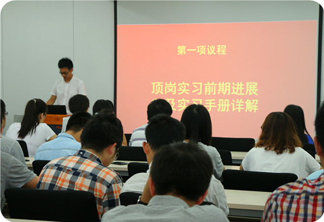 会议伊始,胡国顺老师向大家公布了顶岗实习企业及导师的分配名单;并讲解了大家到了企业单位需注意的一些问题,希望大家在工作中仍能保持君远学子的良好风貌。除此之外,胡老师还与大家交流了工作中“人际沟通”的重要性,强调了良好的沟通是合理解决问题的重要手段。接着,由君远毕业生代表发言,作为一个过来人向12级学子介绍了企业实习的基本情况,鼓励大家发扬”不怕苦,不怕累”的精神。此外,还有实习生代表:贺华、易迅等人上台进行了发言。然后,张经理表达了对大家接下来一年实习的期望,希望大家能将实际与理论结合起来,成为一名真正的卓越工程师。最后,员工与企业导师进行了见面并沟通了入企实习的时间。