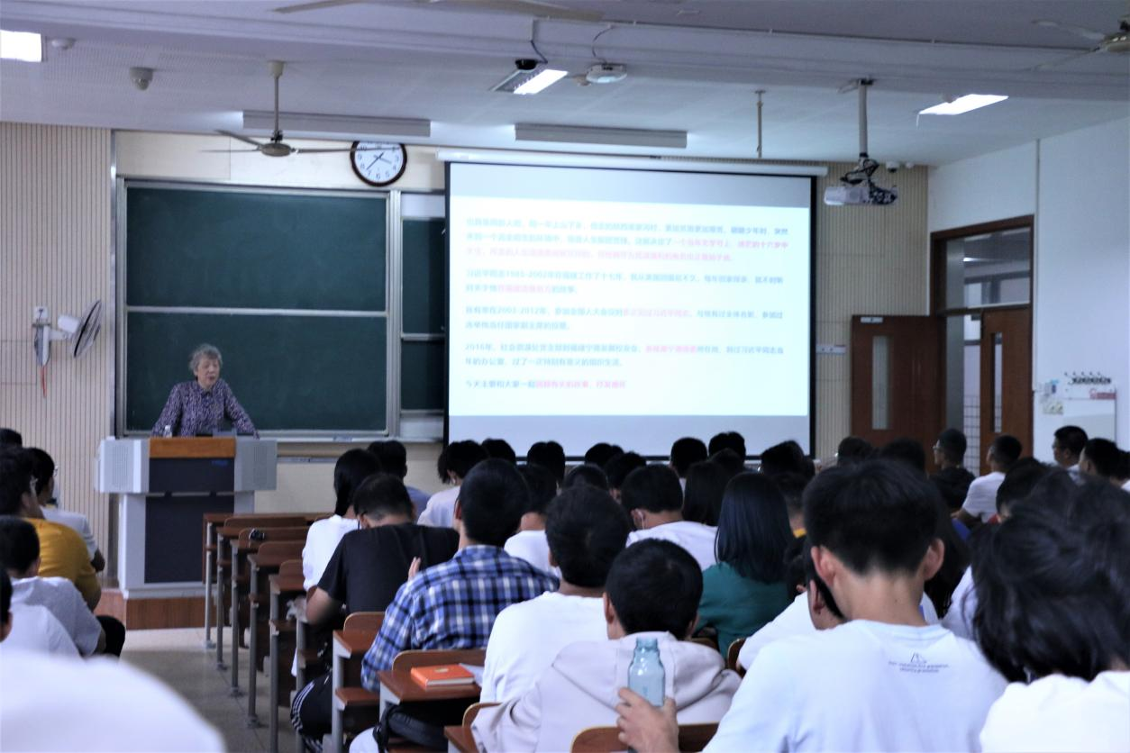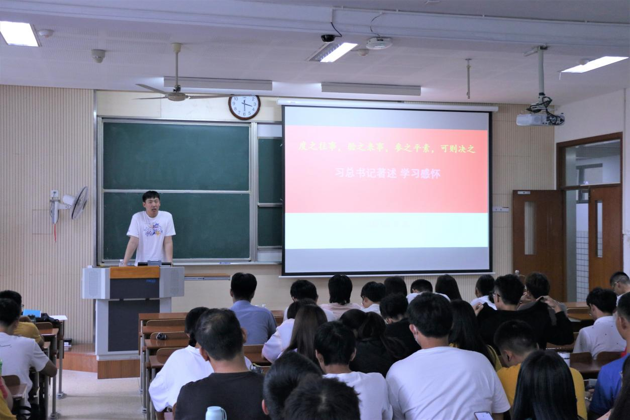 王武教授首先以习近平总书记在党史学习教育动员大会上引用的古语“度之往事,验之来事,参之平素,可则决之”为开篇语引出党课,以习近平总书记的成长之路为主要内容,与同学们分享了习近平总书记从插队梁家河,到调往福建的人生经历,向大家展示了习近平总书记的著述。通过习近平总书记的几个小故事,展现了习近平总书记“我将无我”的大境界和“不负人民”的大作为,进一步鼓舞大家“明理,增信,崇德,力行”。伴随着王武教授生动的讲解,同学们都认真聆听总书记的成长故事,学习习近平总书记迎难而上、越挫越勇、大胆探索、勇于创新的优良品格。