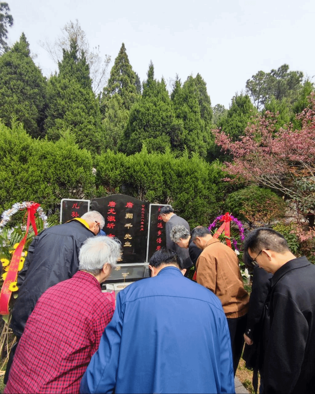 随后,一行人来到爱国实业家、中国共产党的亲密朋友唐翔千先生墓前,金同康秘书长满怀感慨说到,先生虽然已离开三年了,但他的音容笑貌犹在眼前,时时忆起先生心系社会和教育事业的大爱情怀。我辈将不负先生重托,继续发扬先生爱国重教、造福桑梓的精神。全体人员默哀三鞠躬,缅怀感恩之情充盈在每位在场人员的心中。