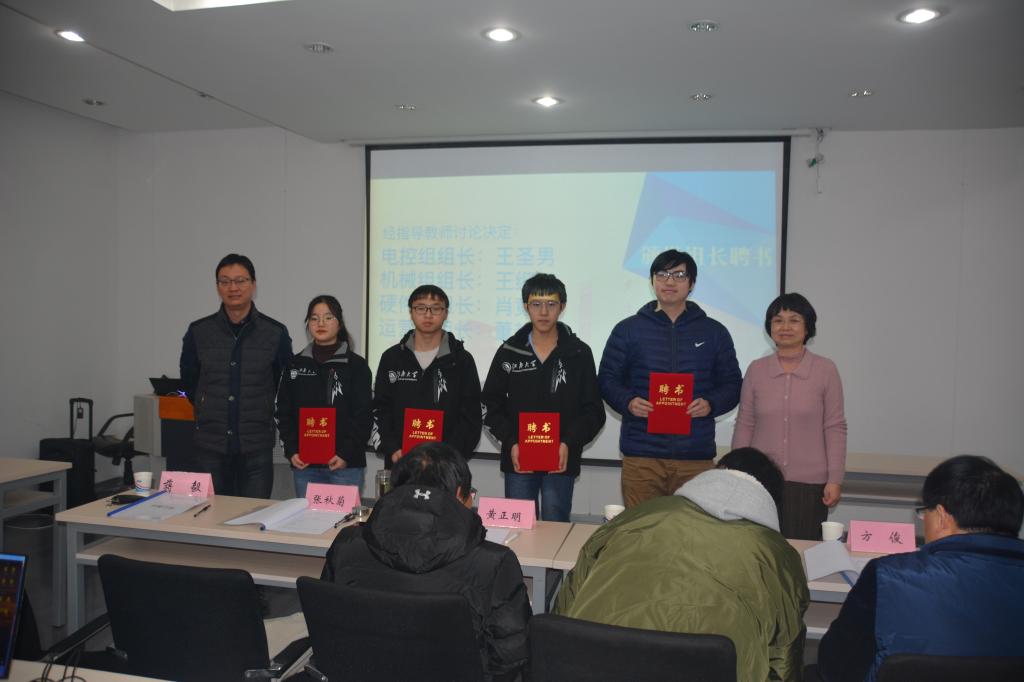 随后,单云婷、方俊、黄正明分别为PlayAce游戏平台雷上钧、叶鹏、丁诗莹颁发队长和副队长聘书,张秋菊和蒋毅分别向电控组组长王圣男、机械组组长王纲、硬件组组长肖竟成、运营组组长董艳珊颁发组长聘书。