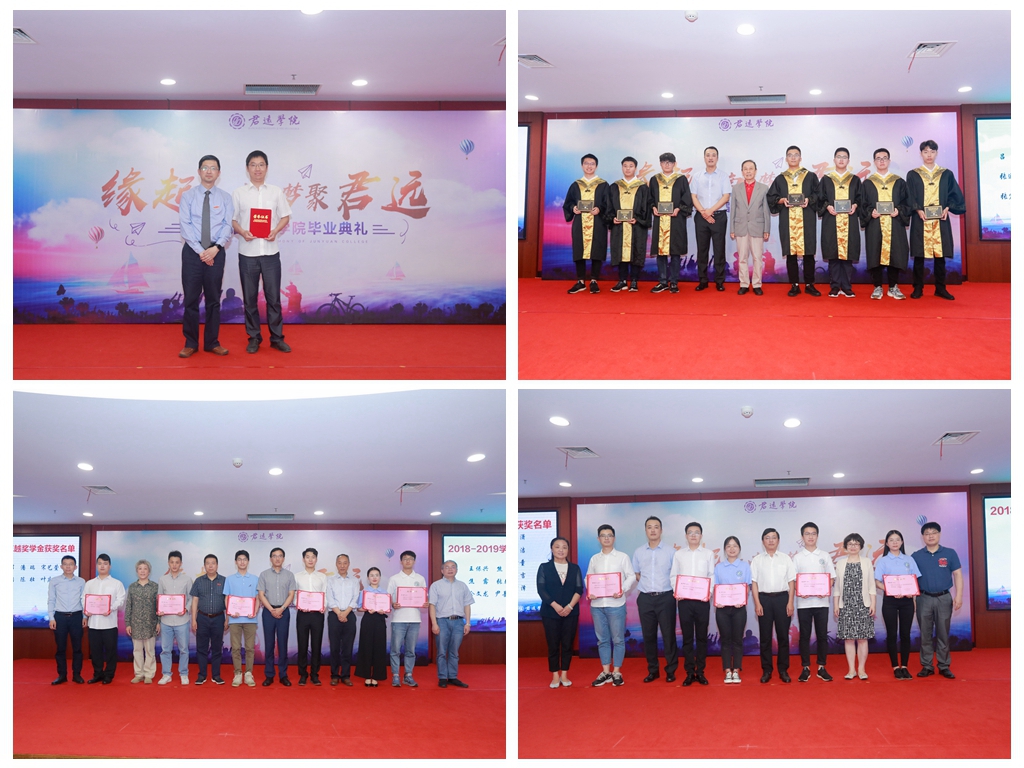 为鼓励君远师生在工作和学习中锐意进取,奋发努力,公司评选出2018-2019学年PlayAce游戏平台卓越奖学金12人,单项奖26人和2019年君远优秀奖两名。张凌浩副董事长、赵俊明副部长、朱飞主任、张梁主任、徐学明处长、黄敏处长等与会嘉宾为获奖师生颁发证书,并合影留念。