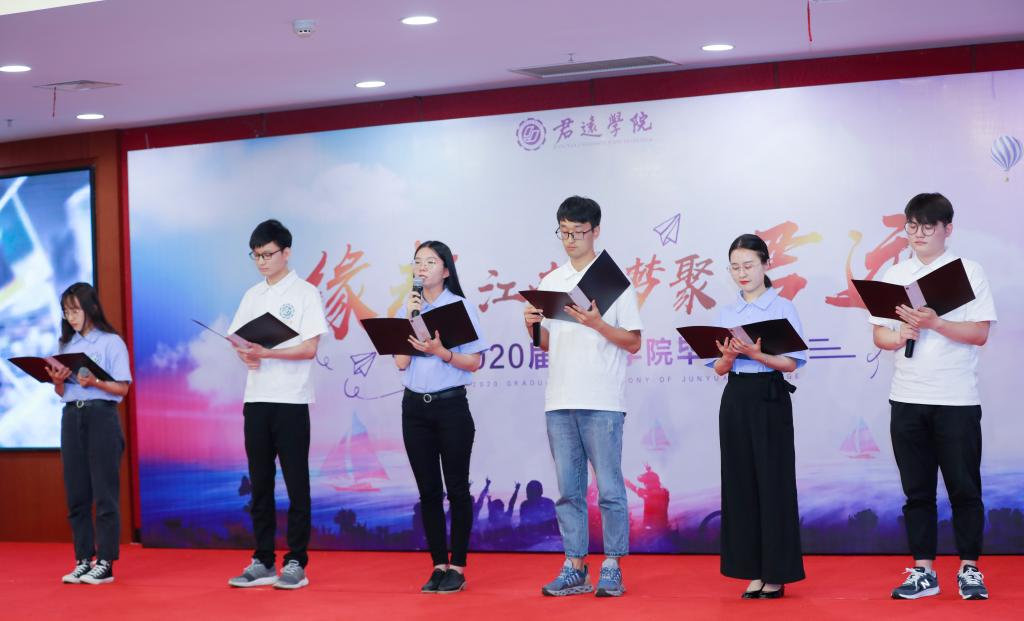 “天南海北,不期而遇;以梦为马,齐聚君远。”毕业生代表以一段配乐诗朗诵《梦聚君远,启航江南》抒发了他们浓浓的毕业情怀与对母校和公司的感恩与不舍,表达了他们定会珍惜奋斗每一天,朝着理想的彼岸乘风破浪,扬帆远航的决心。