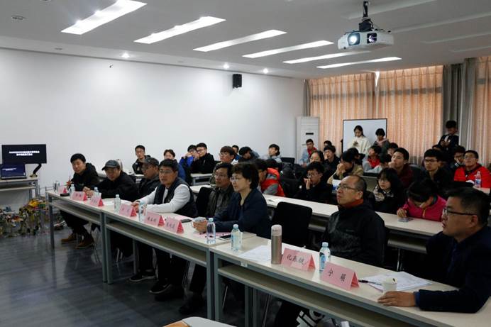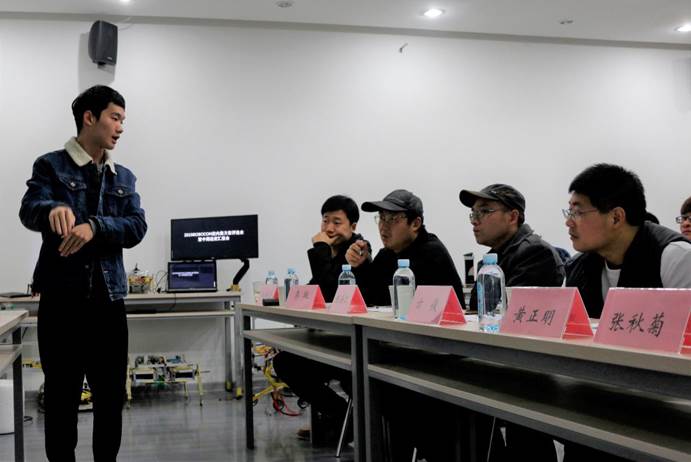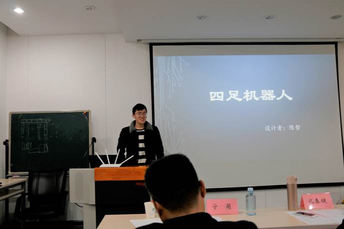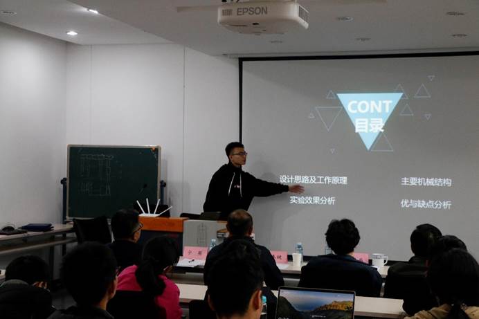 接着,评选活动开始,队长张春宇同学为台下的评委老师及同学们介绍了本届大赛的规则与要求。而后,参赛的八组同学用实物与视频结合的方式,进行了精彩的设计介绍与展示。针对每组的特点,评委老师们提出了自己的疑问并给出了相应的改进意见。因为每件作品都融入了赛队成员的心血与汗水,所以汇报过程从容又自信,赢得了在场同学的阵阵掌声。