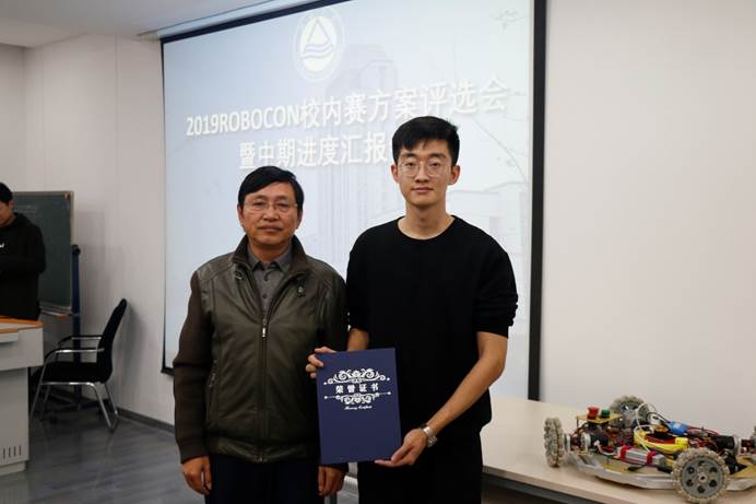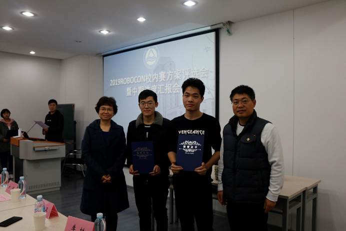 本次活动由机器人队的指导教师宁萌老师主持,其总结了上届比赛的缺憾后,也肯定了多年来俱乐部成员们的努力与付出。随后,由黄书记和张经理向君远16级的张春宇和魏阿龙同学颁发了队长聘书,并希望队长能带领赛队不断突破,在明年的大赛中取得更加优异的成绩。