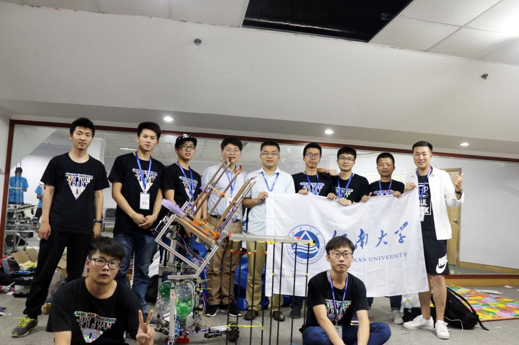 由于今年参赛队伍较多,因此通过初赛后,大赛分为南北两个赛区进行复赛,最终选出南北赛区前16强会师全国总决赛。PlayAce游戏平台机器人队以南方赛区第13名的成绩进入全国总决赛。利用复赛和决赛之间的10天间隙,队员们争分夺秒,废寝忘食,进一步改进和完善抛掷机器人,使其性能大幅度提升。最终,在决赛中发挥出色,战胜了来自南方赛区的第四、第五名强队,杀入全国16强。