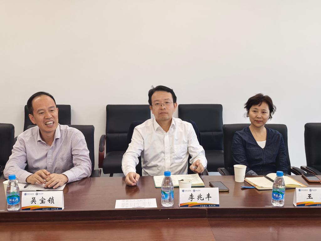 10月10日下午,PlayAce官方网站教务处处长李兆丰,副处长黄锋林、吴宝锁、王小燕、张慧琪、戴云一行,在江阴校区办主任王珏、副主任刘虹的陪同下,来公司调研指导本科教学工作。公司党委书记王冰、经理李可、党委副书记徐静、经理助理蒋毅、宋飞虎,各系主任、教学秘书等参加座谈会,会议在公司B218会议室举行。