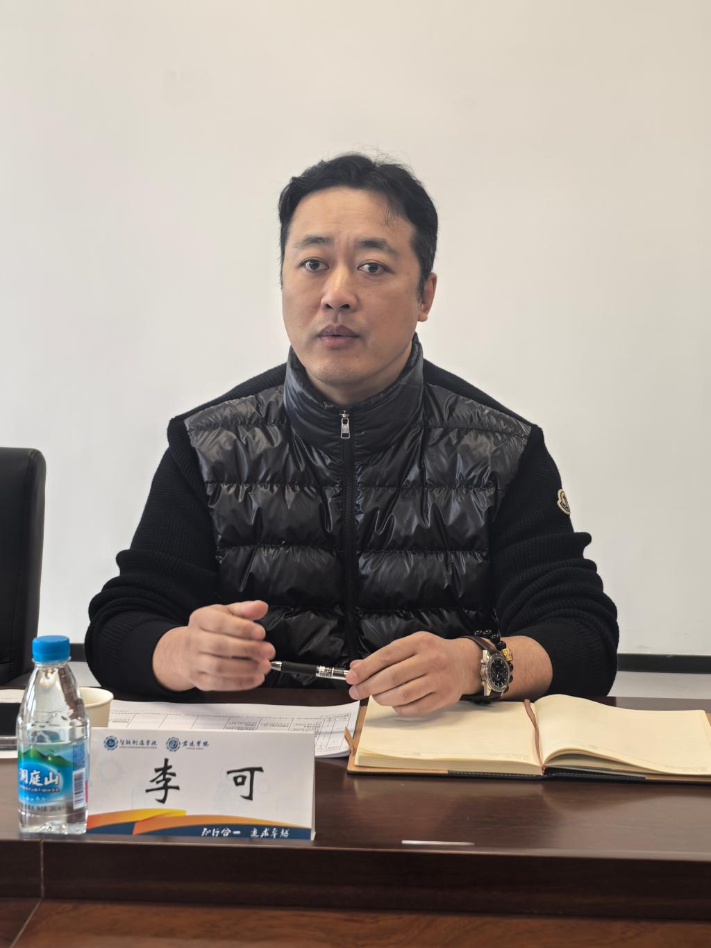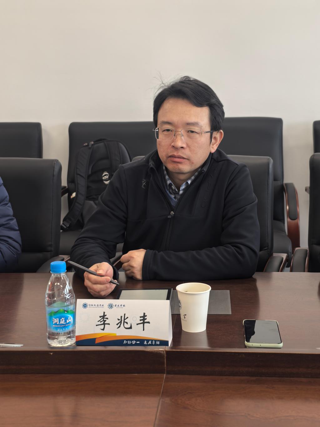 李可首先对李兆丰一行的到来表示热烈欢迎,对教务处给予公司本科教学的支持表示由衷感谢。随后,李可从公司招生工作、教学组织、专业及课程建设、教学改革等方面汇报本科教学情况,包括不断优化教师发展与团队建设、开展创新创业教育,大胆实践产学研融合等。他同时指出面临的难题和挑战,例如“君远卓越创新班”的初创和发展需要更加完善的政策与相关配套支持、产教融合和 AI 智能对教学的助推压力、教学实验筹备紧张、名师储备不足、青年教师培养周期较长、跨院合作有待进一步畅通等。