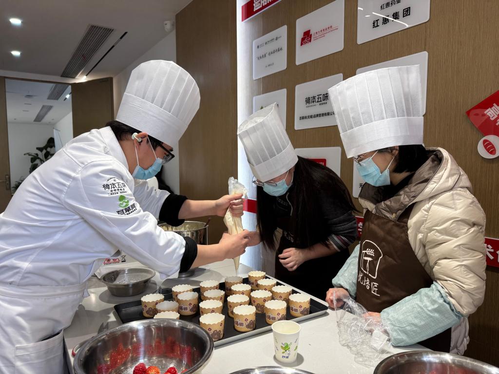 活动在优焙匠烘焙培训中心举行,现场弥漫着面粉、奶油和糖分的香气,充满了欢声笑语。女教职工们在烘焙师的指导下,纷纷化身“烘焙大师”,动手制作起了精美的纸杯蛋糕甜品。