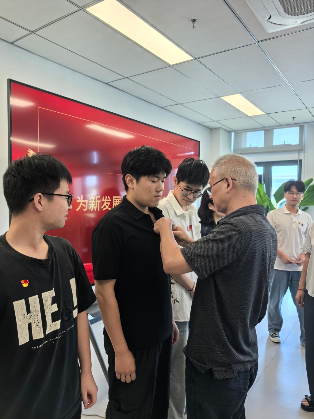 仪式第一阶段在雄壮的《国际歌》声中拉开序幕。首先举行的是党员集体政治生日仪式,新发展党员为党龄逢5倍数周年的8名师生党员献上了节日贺卡与鲜花。徐静宣读新发展预备党员名单,并在党旗面前领誓,全体党员右手握拳,面向鲜红党旗庄严宣誓,铿锵誓言彰显了为党的事业奋斗终身的坚定决心。过党员生日的师生党员为12名新党员佩戴党员徽章,象征着党的光荣使命代代传承。