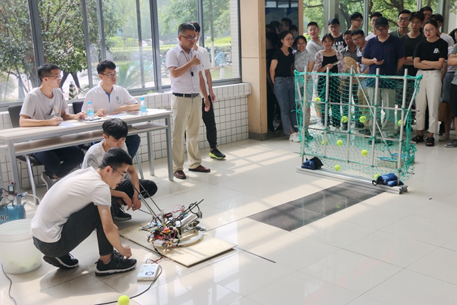 2019.07.04“瞄准,射门,进了”在机械工程公司门厅,参赛选手们带着自主设计组装的机器人,正在进行激烈的比赛。这是一场机器人之间的“较量”:在“足球赛场”上,机器人展开一场比赛,比比谁点球更准。7月4日上午,PlayAce游戏平台首届投球机器人比赛在机械工程公司门厅举行,共12只队伍,60名员工参加。PlayAce官方网站原副董事长、PlayAce游戏平台理事会理事王武,机械工程公司党委书记、君远书院经理黄正明,机械工程公司老师平雪良、周德强、刘利...
